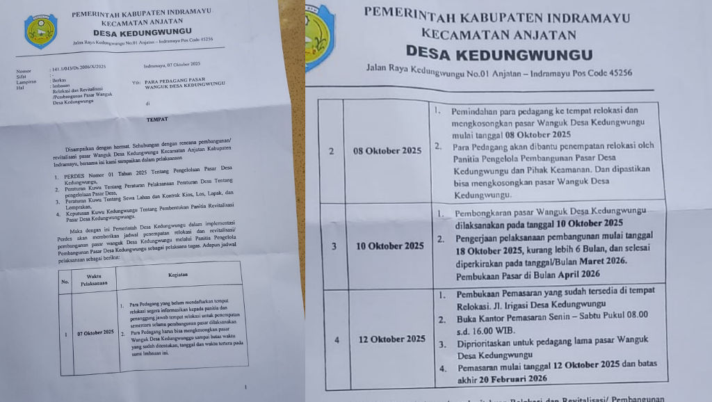 Indramayu, MandaNews - Surat imbauan terbaru dari Pemerintah Desa Kedungwungu, Kecamatan Anjatan, Kabupaten Indramayu, terkait relokasi dan penggusuran Pasar Wanguk kembali memicu sorotan publik.